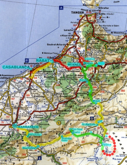Dies ist meine Reiseroute im Überblick. Jeder markierte Punkt der Karte verweist entweder auf den Eintrag im Tagebuch oder auf ein Bild, das ich dort gemacht habe.